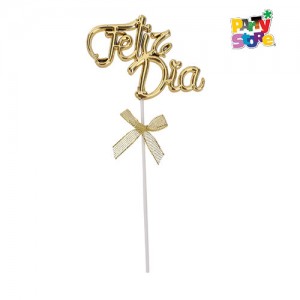 / ADORNO DE TORTA *FELIZ DIA* DORADO