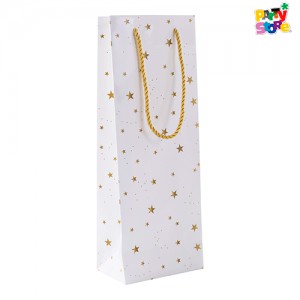 / BOLSA PARA BOTELLA BLANCA C/ ESTRELLAS DORADAS x 1 un. Tamaño: 35,5cm x 13cm x 8cm