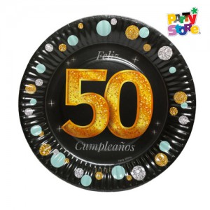 PLATO DE POLIPAPEL 17cm 50 AÑOS x 6 unidades