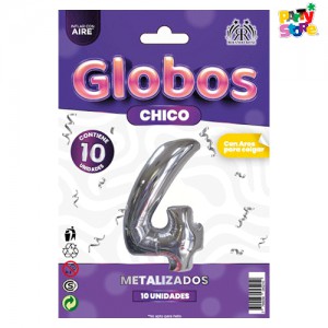 / GLOBO METALIZADO CHICO PLATEADO 4 x 10un + 10 boquillas para inflar