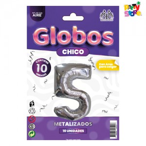 / GLOBO METALIZADO CHICO PLATEADO 5 x 10un + 10 boquillas para inflar