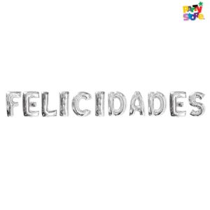 GLOBO METALIZADO SET PLATEADO FELICIDADES 40cm
