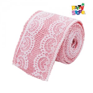 ROLLO DE ARPILLERA ROSA CON BORDE ENCAJE BLANCO 200x6cm