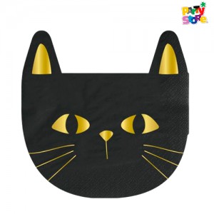 SERVILLETA DE PAPEL FORMA *GATO NEGRO* STAMPING x 12 unidades