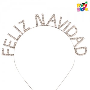 VINCHA DE STRASS FELIZ NAVIDAD PLATEADA